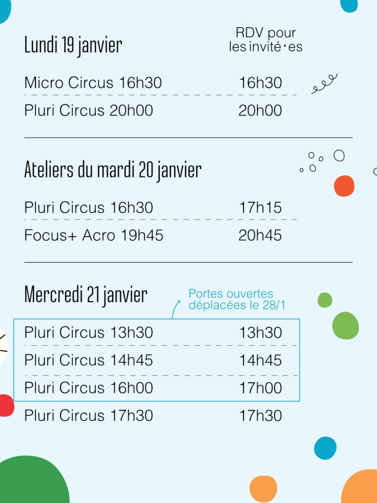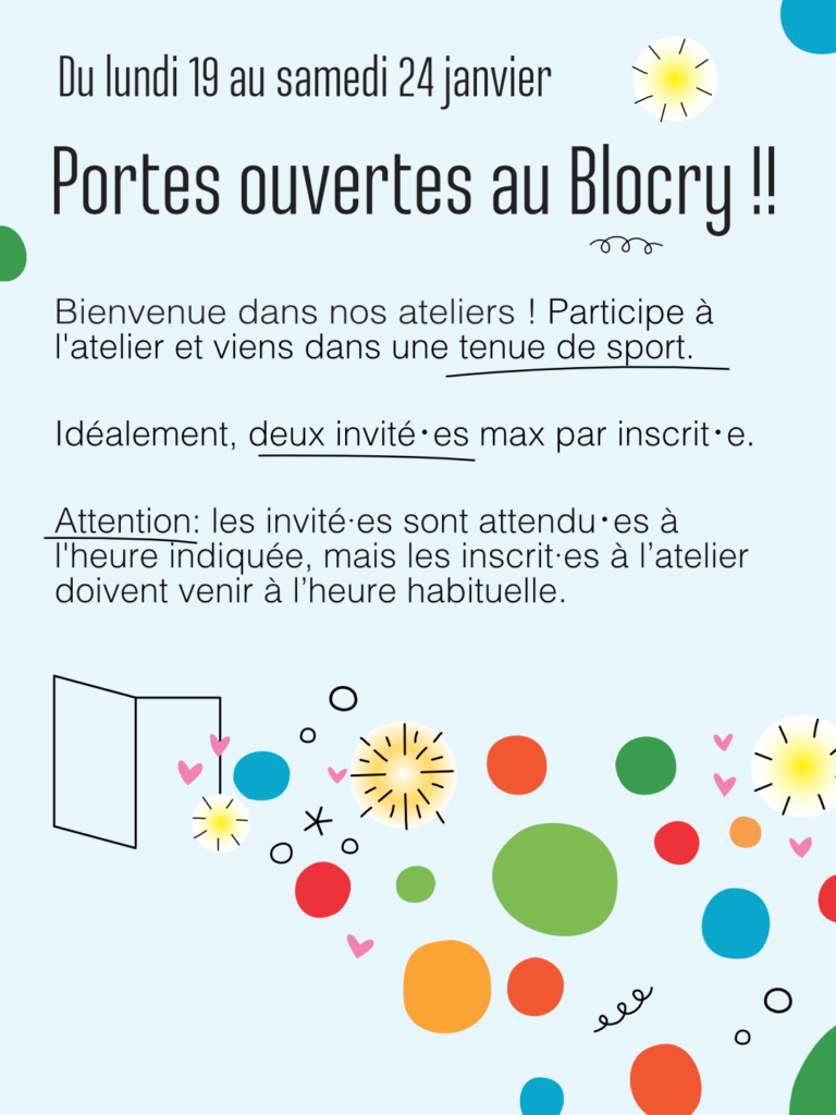 Les portes ouvertes des ateliers du Blocry auront lieu du lundi 19 au samedi 24 janvier. Voici les horaires et modalités pour les différents ateliers :